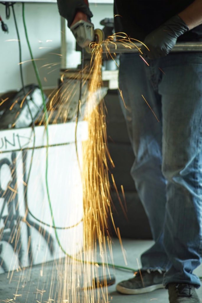 Wire wheel to clean the tar off the floor to weld the base plates too
