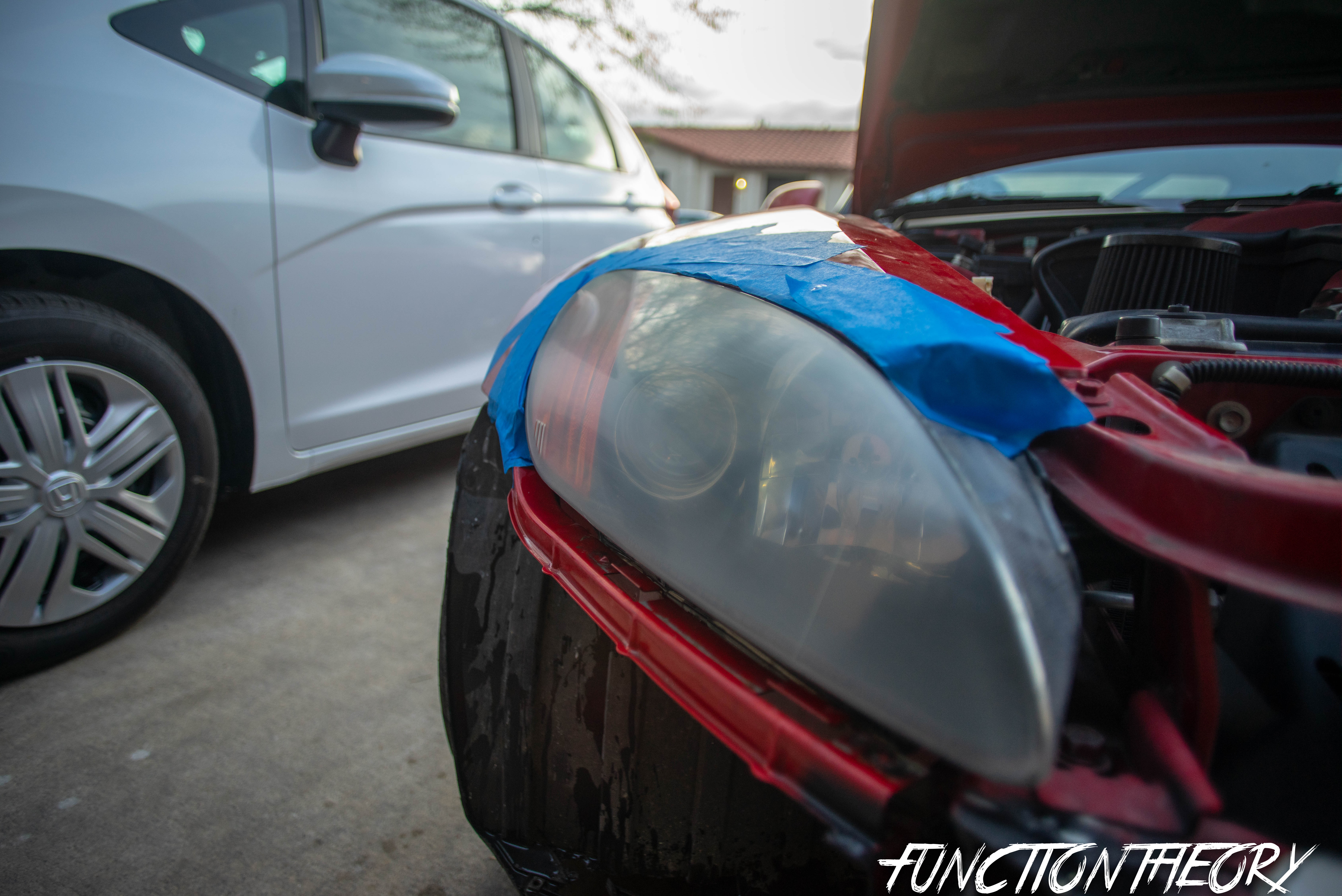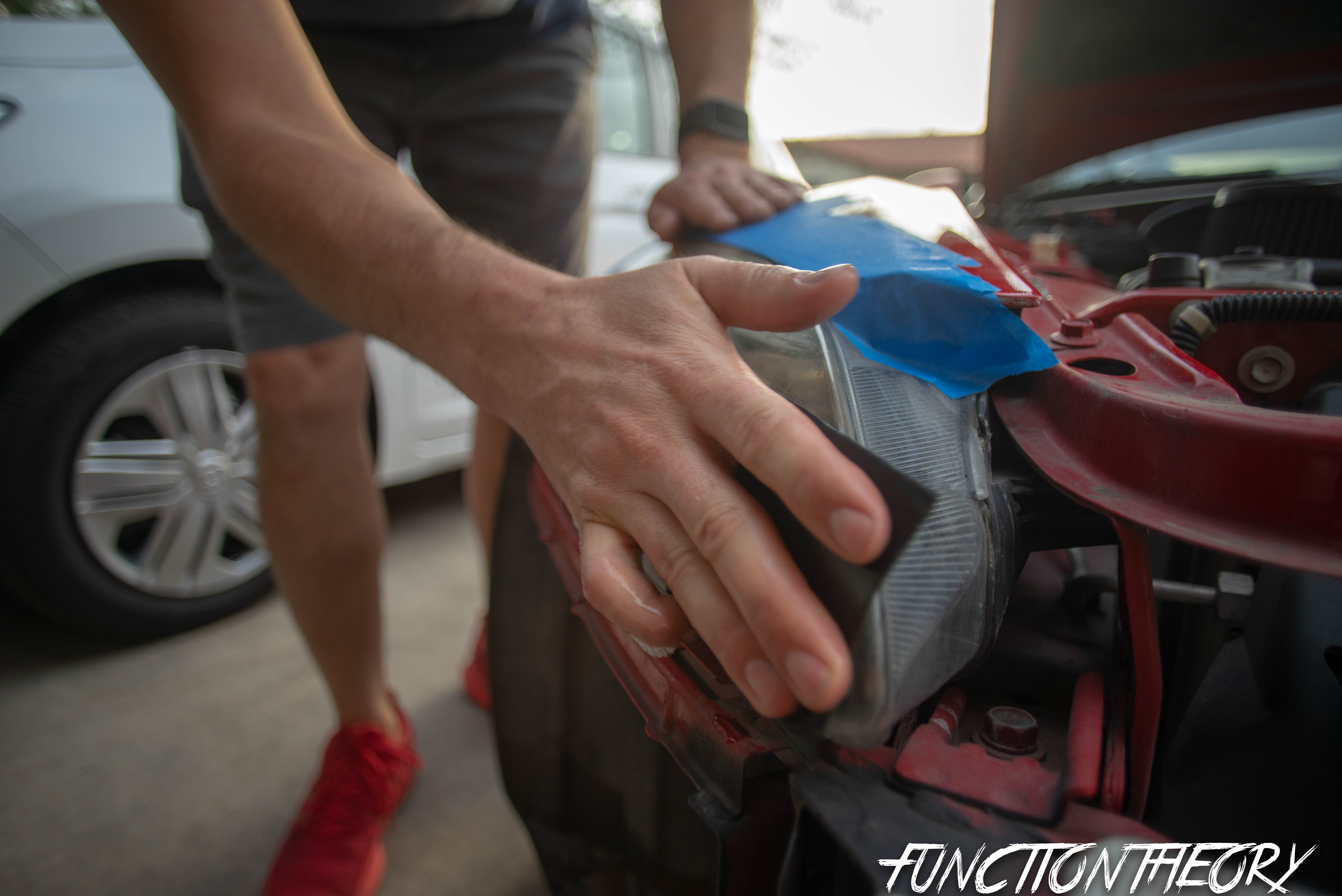 When I see people with a “modified” car driving around with hazy, discolored, yellowish headlights I am instantly judging you. How can you say that you’re an enthusiast if you don’t even care how your car looks. Yes looks aren’t everything, and usually here on FUNCTIONTHEORY looks take a back seat, but everyone wants their car to look somewhat appealing. You spend all your hard-earned money on getting cool wheels, and lowering it which as we know makes the car look good. But for some reason you don’t care about the headlights? I understand that we all don’t have budgets for complete resprays, or to replace major damage to the body. In fact there probably isn’t anyone that understands this more than I do, just look at my 4 door daily. Its 3 different colors, there is quarter panel damage on one side, door damage on the other, and the paint has faded almost all the way off the roof to bare metal! But that still doesn’t mean I don’t want to do everything in my powers to try to keep it looking a good as possible. Try having some pride, and integrity in your car. It doesn’t have to be a show stopper but at least make it look like you love this thing that you call your hobby, or passion. Having ugly headlights on your fixed up car is the equivalent to a super model having hairy legs. Yes she still looks good, and we shouldn’t judge her because she has hairy legs. But we do, and when she shaves them she instantly becomes more appealing. Same goes for your headlights, yes they still technically work, But cleaning them can totally transform the look of your car.